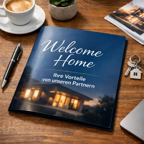 Werden Sie exklusiver Partner im 'Welcome Home' Netzwerk. Wir platzieren Ihr Angebot direkt am Tisch des Notars – persönlich empfohlen durch den Makler. Bevor die Konkurrenz überhaupt weiß, dass das Haus verkauft wurde.